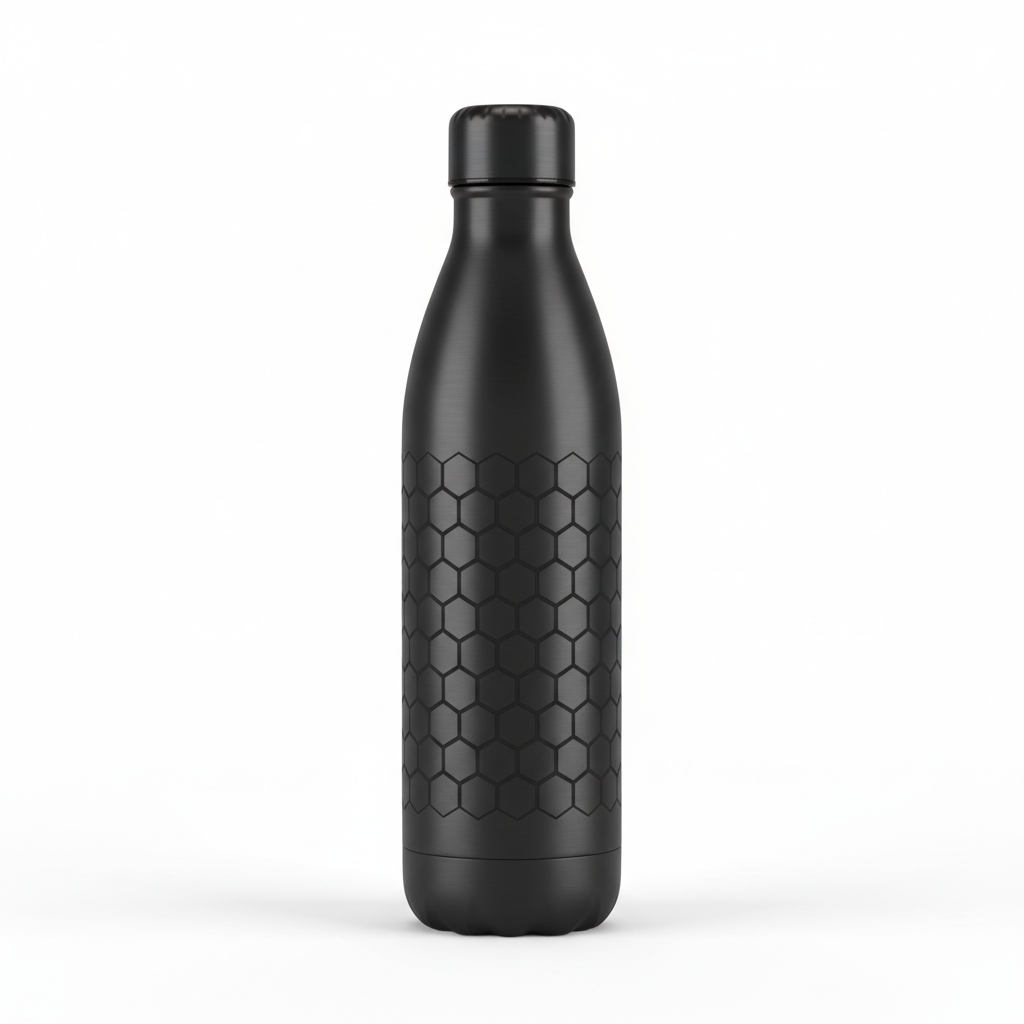 Triple-layered 500ml steel bottle. Keeps drinks at temperature for 24 hours.