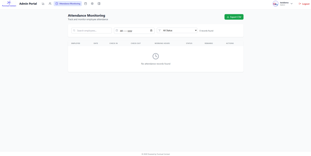Open the Punctual Connect application. By default, the Company Login tab will be selected.